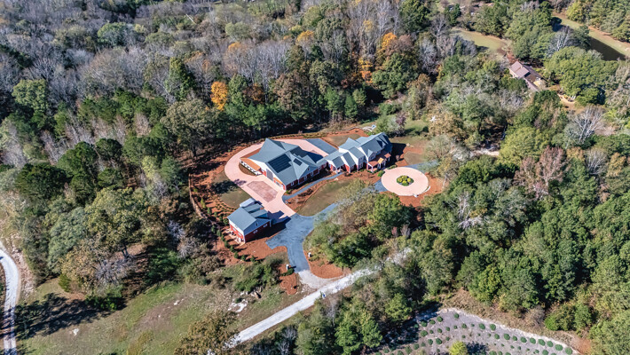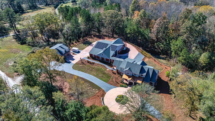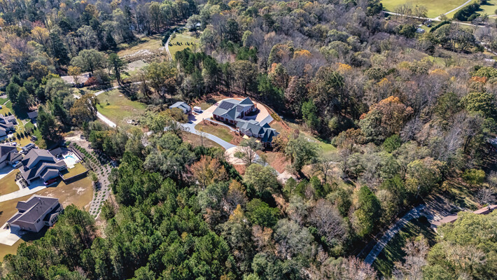 Welcome to 242 Kirkley Road. Hidden down a private drive, this custom home is perched atop a granite outcropping. It was designed specifically for this site to take full advantage of the vista from the highest spot of the 11.2+/- acre tract overlooking the woods that descend to Trickum Creek at the back of the property. Your morning begins as sunlight spills through the wall of windows in the large Primary Suite. The windows overlook a serene landscape with no neighboring homes in sight. The adjacent private Study, with glass doors opening to a covered porch, is the perfect spot to enjoy morning coffee. An Asian inspired Primary Bath features hot water on demand, a wet room with heated floor, heated towel rack, jetted slipper tub, shower with wand attachment. Floating vanities are underlit, showcase exquisite stone tops, and offer convenient hidden electrical outlets. Mirrors are backlit and fog-free. The water closet's Toto toilet has the washlet option. Two well-equipped walk-in closets, plus a linen closet provide storage. The remainder of the home enjoys the same dedication to design and detail. Entertain on a grand scale. Guests enter a large Foyer highlighted by a custom stairway and bannister design. Large Dining Room with commissioned mural and Living Room with massive stone fireplace flow into a chef's dream Kitchen. Here the food prep area features a Sub Zero Refrigerator, a separate Sub Zero Freezer, hidden coffee station, stainless prep sink, Wolf range with pot filler, double ovens, under-counter microwave. Adjacent to the Breakfast Room, the clean up zone features yet another large stainless sink and quiet Cove dishwasher. In addition to the walk-in Pantry, there is a huge closet designated for kitchen storage; both feature Freedom Rail adjustable shelving. The Main level also includes a second, private En Suite with a well-appointed Bath featuring a roll-in shower and walk-in-closet. The Second Level offers an Office, and two more En Suite Bedrooms. The Laundry Room with washer, dryer, sink, and steam closet and MudRoom with built-in cabinetry serve as a drop zone. These segue into a climate-controlled, multi-car garage and huge RV garage. These spaces serve as a buffer between the main house and a 2100+/- sf Accessory Dwelling Unit (ADU). Currently used as an Artist's Studio, the vaulted ADU offers a full Kitchen, Bath with roll-in shower stall, washer/dryer connections, plus an additional deep stainless work sink in the studio. This space has extensive LED lighting and in-floor electrical outlets. It could easily be a man cave, office space, home school, home gym or a separate handicap-accessible living space. Doors open to a wrap-around covered porch with ceiling fans. Separate 2-car garage designed as a climate-controlled and well-appointed woodworking shop with second story storage. Abundant guest parking. Thoughtful design incorporates too many features to enumerate. Located in unincorporated north Fayette County, minutes to I-85 offering convenient access to Atlanta's Hartsfield Airport, movie studios and downtown Atlanta.